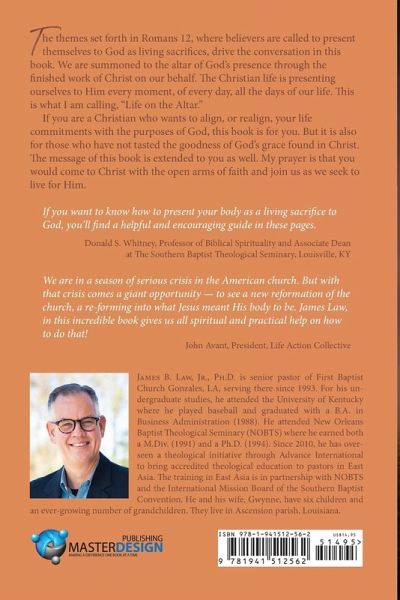 The themes set forth in Romans 12, where believers are called to present themselves to God as living sacrifices, drive the conversation in this book. We are summoned to the altar of God's presence through the finished work of Christ on our behalf. The Christian life is presenting ourselves to Him every moment, of every day, all the days of our life. This is what I am calling, "Life on the Altar." If you are a Christian who wants to align, or realign, your life commitments with the purposes of God, this book is for you. But it is also for those who have not tasted the goodness of God's grace found in Christ. The message of this book is extended to you as well. My prayer is that you would come to Christ with the open arms of faith and join us as we seek to live for Him.