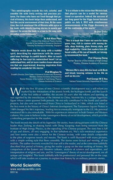 While the first 30 years of new China's scientific development was a self-reliant era marked by the detonations of the atomic bomb, the hydrogen bomb, and the launch of the first artificial satellite, the second 30 years after the reform and opening up was signified by the introduction of the Internet to China. Weimin Wu is a unique legendary figure whose career spanned both periods. He not only contributed to the bomb and satellite projects, but also sent out the email from China to Switzerland in 1986, which was listed as the first event in the history of China's Internet development. The Tiananmen Square Protest in 1989 changed his life's trajectory, leading him to eventually immigrate to the US. His personal emotional life is also remarkable. With his experiences immersed in both Eastern and Western cultures, Wu came to believe in the convergence theory of social development, which provides a refreshing perspective for the readers. The autobiography records the details of his legendary life stories, from taking pictures with the Chinese leader Mao Zedong, to shaking hands with Deng Xiaoping; from being removed from the Institute of High Energy Physics, to the repealing of his Chinese passport. The story line is full of engaging ups and downs. In that turbulent era, Wu's rich emotional experiences and love stories were also a mirror for the Chinese society, with some details comparable to the plots of suspense novels and movies. The book is well illustrated with many pictures and flows smoothly with a simple writing style. The stories are factual and moving, all too realistic. The author has sincerely revealed his true self to the reader, and at the same time, faithfully described that period of history, giving the reader a grasp on the true workings of history. His comparison of the Eastern and Western cultures, analysis of science and superstition, interpretation of religion and arts, and his "convergence" theory of social development, are all unique and insightful. This book faithfully tells Weimin's professional and personal life on the cusp and takes readers on a journey to explore true history through an ordinary person's stories.