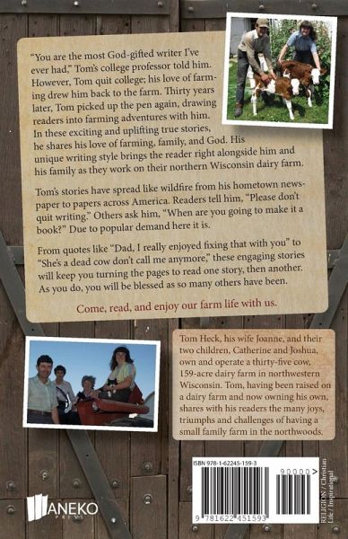 "You are the most God-gifted writer I've ever had," Tom's college professor told him. However, Tom quit college; his love of farming drew him back to the farm. Thirty years later, Tom picked up the pen again, drawing readers into farming adventures with him. In these exciting and uplifting true stories, he shares his love of farming, family, and God. His unique writing style brings the reader right alongside him and his family as they work on their northern Wisconsin dairy farm. Tom's stories have spread like wildfire from his hometown newspaper to papers across America. Readers tell him, "Please don't quit writing." Others ask him, "When are you going to make it a book?" Due to popular demand here it is. From quotes like "Dad, I really enjoyed fixing that with you" to "She's a dead cow don't call me anymore," these engaging stories will keep you turning the pages to read one story, then another. As you do, you will be blessed as so many others have been. Come, read, and enjoy our farm life with us.