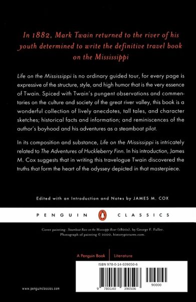 Describes life on the Mississippi River, with observations and anecdotes about the culture and society along the river valley. This book includes character sketches, historical facts, information and reminiscences of Twain's boyhood and experiences as a steam-boat pilot.