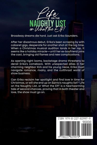 Life on the Naughty List, or What the Elf! is a heartwarming holiday romantic comedy that follows Broadway actress Erika Saunders as she navigates the ups and downs of her career and love life in the bustling world of New York City theater. After a string of professional setbacks and dating disasters, Erika lands a starring role in a new Christmas musical, but she's quickly wondering what the elf she's gotten herself into. As Erika juggles rehearsals, opening night jitters, and dating, she discovers that sometimes the best gifts come wrapped in tinsel and second chances. Will she find the man of her dreams by opening night? With a cast of colorful characters and dialogue sprinkled with festive substitutions for naughty words, this novel offers a delightfully clean behind-the-scenes look at the drama and magic of Broadway. Filled with humor, heart, and enough holiday spirit to make even Scrooge smile, Life on the Naughty List, or What the Elf! reminds us that love and dreams can bloom even in the frostiest of circumstances. It's a jolly good time that will have readers laughing, swooning, and believing in the magic of Christmas-and Broadway-all year round.