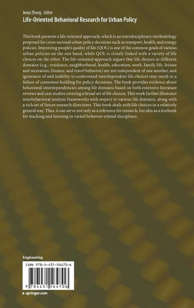 This book presents a life-oriented approach, which is an interdisciplinary methodology proposed for cross-sectoral urban policy decisions such as transport, health, and energy policies. Improving people's quality of life (QOL) is one of the common goals of various urban policies on the one hand, while QOL is closely linked with a variety of life choices on the other. The life-oriented approach argues that life choices in different domains (e.g., residence, neighborhood, health, education, work, family life, leisure and recreation, finance, and travel behavior) are not independent of one another, and ignorance of and inability to understand interdependent life choices may result in a failure of consensus building for policy decisions. The book provides evidence about behavioral interdependencies among life domains based on both extensive literature reviews and case studies covering a broad set of life choices. This work further illustrates interbehavioral analysis frameworks with respect to various life domains, along with a rich set of future research directions. This book deals with life choices in a relatively general way. Thus, it can serve not only as a reference for research, but also as a textbook for teaching and learning in varied behavior-related disciplines.