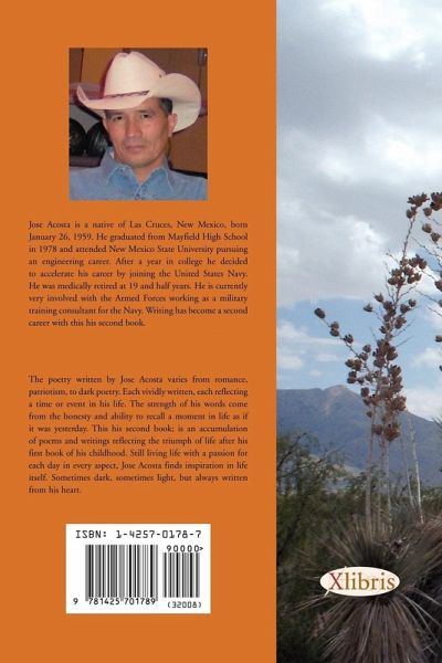The poetry written by Jose Acosta varies from romance, patriotism, to dark poetry. Each vividly written, each reflecting a time or event in his life. The strength of his words come from the honesty and ability to recall a moment in life as if it was yesterday. This his second book; is an accumulation of poems and writings reflecting the triumph of life after his first book of his childhood. Still living life with a passion for each day in every aspect, Jose Acosta finds inspiration in life itself. Sometimes dark, sometimes light, but always written from his heart.