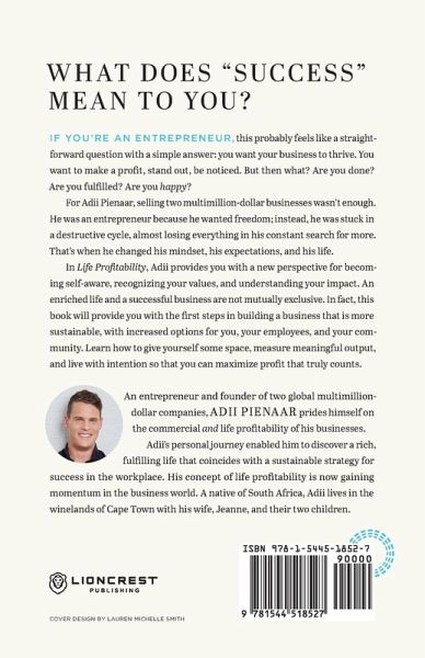 What does "success" mean to you? If you're an entrepreneur, this probably feels like a straightforward question with a simple answer: you want your business to thrive. You want to make a profit, stand out, be noticed. But then what? Are you done? Are you fulfilled? Are you happy? For Adii Pienaar, selling two multimillion-dollar businesses wasn't enough. He was an entrepreneur because he wanted freedom; instead, he was stuck in a destructive cycle, almost losing everything in his constant search for more. That's when he changed his mindset, his expectations, and his life. In Life Profitability, Adii provides you with a new perspective for becoming self-aware, recognizing your values, and understanding your impact. An enriched life and a successful business are not mutually exclusive. In fact, this book will provide you with the first steps in building a business that is more sustainable, with increased options for you, your employees, and your community. Learn how to give yourself some space, measure meaningful output, and live with intention so that you can maximize profit that truly counts.