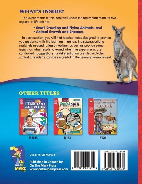 The experiments in this book fall under ten topics that relate to two aspects of life science: Small Crawling & Flying Animals; and Animal Growth & Changes. In each section, you will find teacher notes designed to provide you guidance with the learning intention, the success criteria, materials needed, a lesson outline, as well as some insight on what results to expect when the experiments are conducted. Suggestions for differentiation are also included so that all students can be successful in the learning environment. Ten Topics Include:Invertebrates A Study of Invertebrates Birds Fish Reptiles and Amphibians Mammals Life Cycles Human Development Co-Existing An Aboriginal Connection 96 pages.