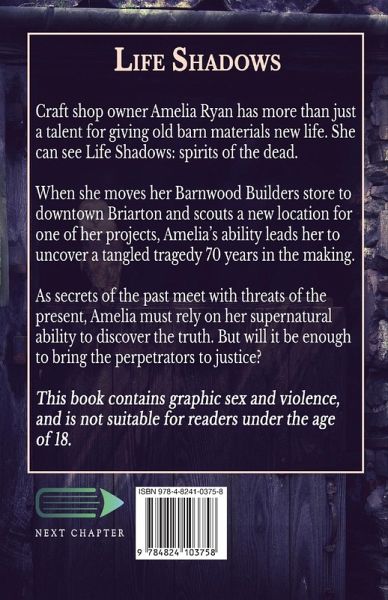 This book contains graphic sex and violence, and is not suitable for readers under the age of 18. Craft shop owner Amelia Ryan has more than just a talent for giving old barn materials new life. She can see Life Shadows: spirits of the dead. When she moves her Barnwood Builders store to downtown Briarton and scouts a new location for one of her projects, Amelia's ability leads her to uncover a tangled tragedy 70 years in the making. As secrets of the past meet with threats of the present, Amelia must rely on her supernatural ability to discover the truth. But will it be enough to bring the perpetrators to justice?