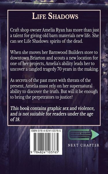 This book contains graphic sex and violence, and is not suitable for readers under the age of 18. Craft shop owner Amelia Ryan has more than just a talent for giving old barn materials new life. She can see Life Shadows: spirits of the dead. When she moves her Barnwood Builders store to downtown Briarton and scouts a new location for one of her projects, Amelia's ability leads her to uncover a tangled tragedy 70 years in the making. As secrets of the past meet with threats of the present, Amelia must rely on her supernatural ability to discover the truth. But will it be enough to bring the perpetrators to justice?