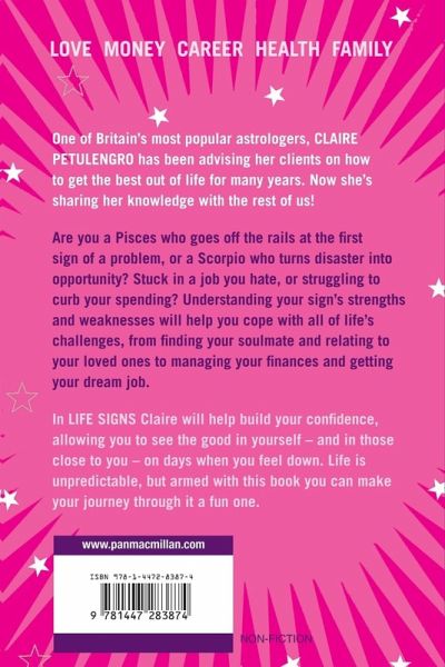 Claire Petulengro is the astrologer for Company, Pick Me Up and the Mirror's We Love Telly magazines, as well as writing a syndicated column for over 100 regional newspapers. She is the resident astrologer for 3 Phones, and appears regularly on television and radio, including This Morning, Richard and Judy, MTV and Living TV. Further information can be found on her website, www.claireshoroscopes.com.