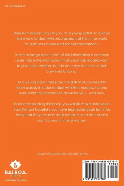 Here is an opportunity for you, as a young adult, to quickly learn how to deal with most aspects of life in the world outside your home and school environment. To the average adult, most of this information is common sense. This is the information that adult role models want to give their children, but do not have the time in their busy lives to do so. As a young adult, these are the skills that you need to learn quickly in order to deal with life's hurdles. No one ever writes this information down for you...until now. Even after reading this book, you will still make mistakes in your life, but hopefully you have learned enough from this book that they are only small mistakes, and do not cost you too much time or money.