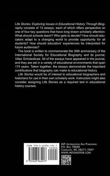 Life Stories: Exploring Issues in Educational History Through Biography consists of 13 essays, each of which offers perspective on one of four key questions that have long drawn scholarly attention: What should schools teach? Who gets to decide? How should educators adapt to a changing world to provide opportunity for all students? How should educators' experiences be interpreted for future audiences? The book is written to commemorate the thirtieth anniversary of the International Society for Educational Biography and its journal, Vitae Scholasticae. All of the essays have appeared in the journal, and they are set in a variety of educational environments that span 174 years. Taken together, the essays demonstrate the important contributions that biography can make to educational history. Life Stories would be of interest to educational biographers and historians for use in their own scholarly work. Instructors might also consider assigning Life Stories as a required text in educational history courses.