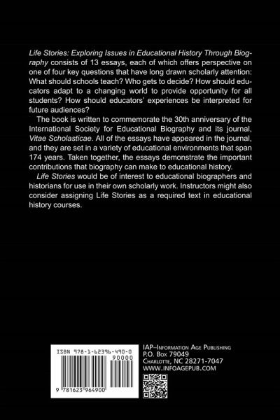 Life Stories: Exploring Issues in Educational History Through Biography consists of 13 essays, each of which offers perspective on one of four key questions that have long drawn scholarly attention: What should schools teach? Who gets to decide? How should educators adapt to a changing world to provide opportunity for all students? How should educators' experiences be interpreted for future audiences? The book is written to commemorate the thirtieth anniversary of the International Society for Educational Biography and its journal, Vitae Scholasticae. All of the essays have appeared in the journal, and they are set in a variety of educational environments that span 174 years. Taken together, the essays demonstrate the important contributions that biography can make to educational history. Life Stories would be of interest to educational biographers and historians for use in their own scholarly work. Instructors might also consider assigning Life Stories as a required text in educational history courses.