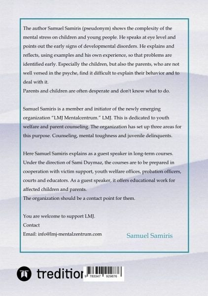 Guide to youth welfare psychologyThe book is about self-discovery and reflection. Juvenile delinquents usually have a difficult past. Mistreatment and sexual assaults are not uncommon and so there are deficits in their development that should be compensated. I use simple examples to show how they can find each other again and how they can connect to society. Program yourself positively and shed guilt. How the psyche and emotions dominate them and what needs to be done to finally counteract old patterns. You will find yourself in the book and get help.This book goes very far and deep and will touch you so much.