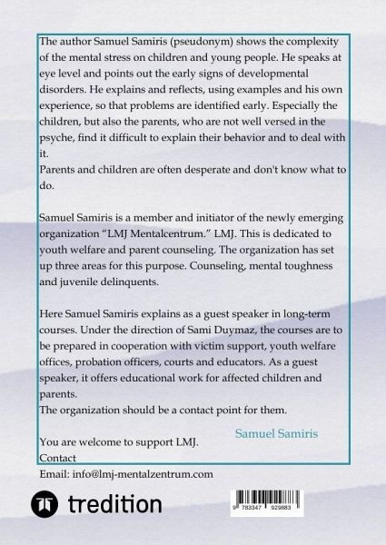 Guide to youth welfare psychologyThe book is about self-discovery and reflection. Juvenile delinquents usually have a difficult past. Mistreatment and sexual assaults are not uncommon and so there are deficits in their development that should be compensated. I use simple examples to show how they can find each other again and how they can connect to society. Program yourself positively and shed guilt. How the psyche and emotions dominate them and what needs to be done to finally counteract old patterns. You will find yourself in the book and get help.This book goes very far and deep and will touch you so much.