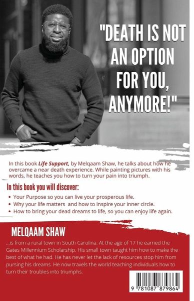 In this book Life Support, by Melqaam Shaw, he talks about how he overcame a near death experience. While painting pictures with his words, he teaches you how to turn your pain into triumph. In this book you will discover: * Your Purpose so you can live your prosperous life. * Why your life matters and how to inspire your inner circle. * How to bring your dead dreams to life, so you can enjoy life again.