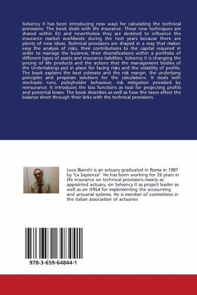 Solvency II has been introducing new ways for calculating the technical provisions. The book deals with life insurance. These new techniques are shared within EU and nevertheless they are destined to influence the insurance market worldwide during the next years because there are plenty of new ideas. Technical provisions are shaped in a way that makes easy the analysis of risks, their contributions to the capital required in order to manage the business, their diversifications within a portfolio of different types of assets and insurance liabilities. Solvency II is changing the pricing of life products and the actions that the management bodies of the Undertakings put in place for facing risks and the volatility of profits. The book explains the best estimate and the risk margin, the underlying principles and proposes solutions for the calculations. It deals with stochastic runs, policyholder behaviour, risk mitigation provided by reinsurance. It introduces the loss functions as tool for projecting profits and potential losses. The book describes as well as how the taxes affect the balance sheet through their links with the technical provisions.