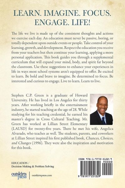 Have you ever felt that you learn more outside of the classroom than inside the classroom? The author of this book has been a teacher for twenty-five years and he couldn't agree with you more. This book provides a plan to live your life learning and learning to live a great life. The four pillars of learning presented in the book are Learn, Imagine, Focus, and Engage. Each day the author provides a standard as your guide, activities to exercise, and experience with the standard. The book contains a full school year's worth of learning that will enhance what you learn in school. The best teacher is your own LIFE of experiences. Start living to learn. Start learning to live.