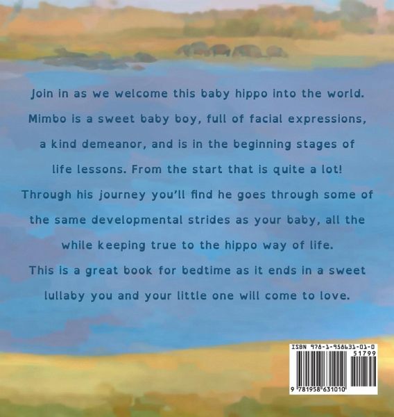 Life with Mimbo the Hippo- Mimbo's Arrival A sweet story between baby boy and mommy, a way to share an experience and shed some light on the beginnings of life. This book pertains to the milestones your typical infant child will experience in the first year of life. This fun combination and connections that are shared between hippos and human infants will surprise most, but are relevant nonetheless. Mostly this is a sweet picture book to share with parents and the tender children in this world. In these pages mommy and baby will both relate to something. There are many connections to be made in this children's book. It is a hope that in reading this, it could be used as a helpful guide to understand that every child and parent is different, and that we all have difficulties in our own ways, but what really matters is the way we deal with them.