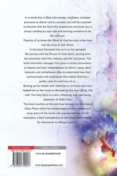 In a world that is filled with anxiety, loneliness, constant pressures to deliver and to succeed, you will be surprised to discover that the God who created you and loves you is always standing by your side and awaiting invitation to do life with you. Majority of us know the Word of God but only a few have met the God of that Word. In this book Koenahali lets us in on her personal life-journey with the Person of Holy Spirit, starting from the encounter with Him, Adonai, and the Lord Jesus. This book chronicles messages from Jesus as direct encounters, to dreams and their interpretation to inform, equip, allow believers and nonbelievers alike to understand how God communicates and emphasises that indeed God has a perfect plan for each one of us. Backing up her beliefs with reference to all those who have helped her on her route to discovering this true calling, Life with The Holy Spirit is a new, refreshing, and captivating statement of God's love. The book touches on the end time harvest, and the Global Glory Move which has already begun in many homes and many parts of the world, the requirements for its full realization, a Seer's perspective of this move and invitation for whosoever is willing to jump in