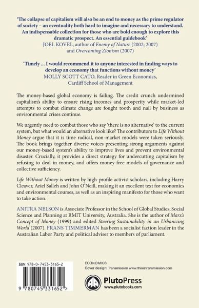 The money-based global economy is failing. The credit crunch undermined capitalism's ability to ensure rising incomes and prosperity while market-led attempts to combat climate change are fought tooth and nail by business as environmental crises continue. We urgently need to combat those who say 'there is no alternative' to the current system, but what would an alternative look like? The contributors to Life Without Money argue that it is time radical, non-market models were taken seriously. The book brings together diverse voices presenting strong arguments against our money-based system's ability to improve lives and prevent environmental disaster. Crucially, it provides a direct strategy for undercutting capitalism by refusing to deal in money, and offers money-free models of governance and collective sufficiency. Life Without Money is written by high-profile activist scholars, including Harry Cleaver, Ariel Salleh and John O'Neill, making it an excellent text for political economy and environmental courses, as well as an inspiring manifesto for those who want to take action.