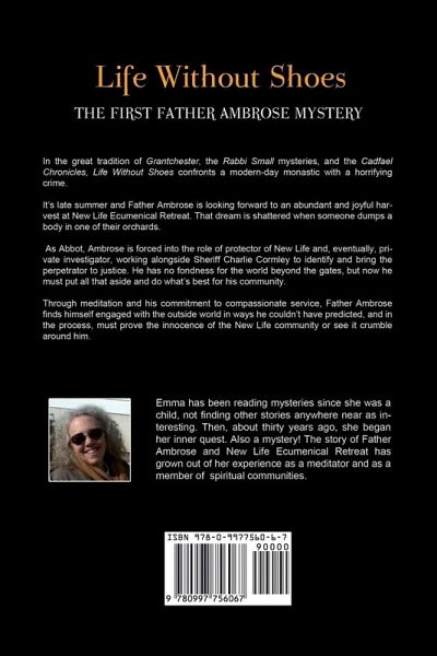 New Life should be a place of rest and healing. So why would anyone dump a body in their orchard? Can the visionary Father Ambrose hold onto his own peace of mind, help his fragile community survive, and assist the police to catch a murderer? Life Without Shoes is a gentle newcomer in the world of clerical mysteries-welcome! ~ Donna Fletcher Crow, The Monastery Murders Series In the tradition of Grantchester, the Rabbi Small mysteries, the Cadfael Chronicles, and The Monastery Murders Series, Life Without Shoes confronts a modern-day monastic with a horrifying crime. It's late summer and Father Ambrose is looking forward to an abundant and joyful harvest at New Life Ecumenical Retreat. That dream is shattered when someone dumps a body in one of their orchards. As Abbot, Ambrose is forced into the role of protector of New Life and, eventually, private investigator, working alongside Sheriff Charlie Cormley to identify and bring the perpetrator to justice. He has no fondness for the world beyond the gates, but now he must put all that aside and do what's best for his community. Through meditation and his commitment to compassionate service, Father Ambrose finds himself engaged with the outside world in ways he couldn't have predicted, and in the process, must prove the innocence of the New Life community or see it crumble around him.