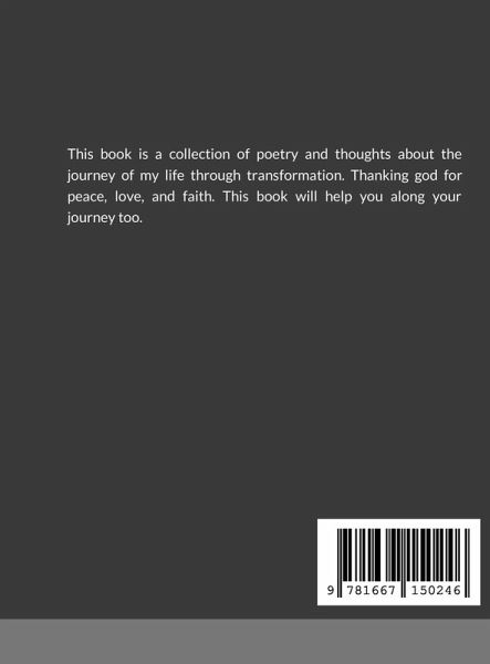 This book is a collection of poetry and thoughts about the journey of my life through transformation. Thanking god for peace, love, and faith, this book will help you along your journey to.