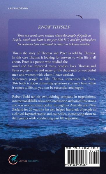 This is the story of Thomas and Peter as told by Thomas. In this case Thomas is looking for answers to what life is all about. Peter is a person who studied the mind and has improved many people's lives. Thomas and Peter represent me and many of the thousands of wonderful men and women with whom I have worked. Sometimes people act like Thomas, sometimes like Peter. This book is about answering questions you may have when it comes to life, so you can be successful and happy.