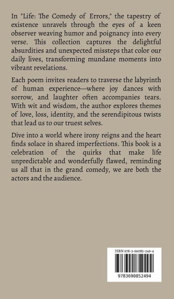 In "Life: The Comedy of Errors," the tapestry of existence unravels through the eyes of a keen observer weaving humor and poignancy into every verse. This collection captures the delightful absurdities and unexpected missteps that color our daily lives, transforming mundane moments into vibrant revelations. Each poem invites readers to traverse the labyrinth of human experience-where joy dances with sorrow, and laughter often accompanies tears. With wit and wisdom, the author explores themes of love, loss, identity, and the serendipitous twists that lead us to our truest selves. Dive into a world where irony reigns and the heart finds solace in shared imperfections. This book is a celebration of the quirks that make life unpredictable and wonderfully flawed, reminding us all that in the grand comedy, we are both the actors and the audience.