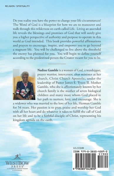 Do you realize you have the power to change your life circumstances? The Word of God is a blueprint for how we are to maneuver and walk through this wilderness on earth called Life. Living an ascended life reveals the blessings and promises of God that will surely give you a higher perspective of authority and purpose to operate in this world as God intended. This book provides powerful affirmations and prayers to encourage, inspire, and empower you to go beyond a stagnant life. You will be challenged to live above the threshold the enemy has planned for you. You will begin to define yourself according to the predestined person the Creator meant for you to be.