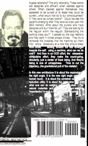 A good rationality? The only rationality. These rooms are designed and efficient when stacked against others. When stacked against themselves they appeared to be curved or at lease they could be curved....what would that do to our consciousness? If They exist as curved rooms? Could we see the patterns emerging after They exist as blips upon the EEG memory. What about the pundits who have designed and built them for us? They are looking for the regular within the regular. Standardizing the working class soul? I passed by the clay matrons and they work in circles always circles. They try to complete the mistakes that the machine put them into: orbits. Especially at a time they should break from orbits. Moving forward the text emerges towards the self: using a machine, what can we do over? And then in an OCD effort, the obsessive-compulsive effort, circularity, just a center of there being. And they're being is one of unhappiness. Time to cut the trajectory...the gravitational pull of 'the mistake'.