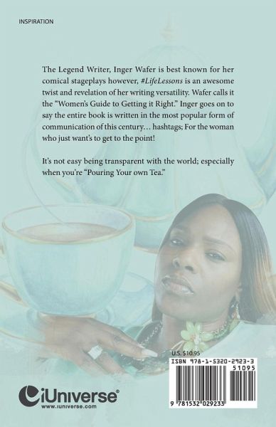 The Legend Writer, Inger Wafer is best known for her comical stageplays however, #LifeLessons is an awesome twist and revelation of her writing versatility. Wafer calls it the "Women's Guide to Getting it Right." Inger goes on to say the entire book is written in the most popular form of communication of this century… hashtags; For the woman who just want's to get to the point! It's not easy being transparent with the world; especially when you're "Pouring Your own Tea."