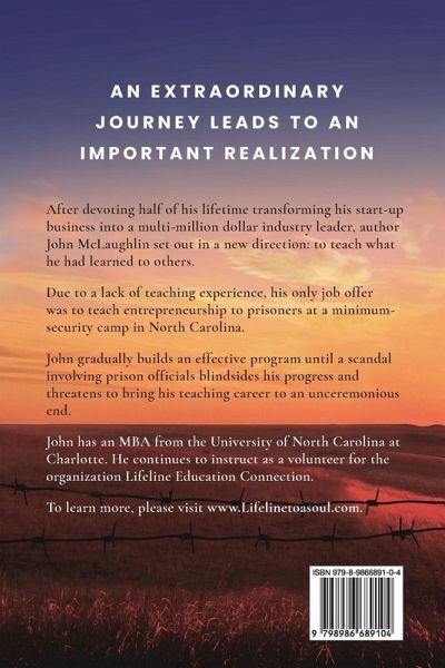The Victories and Challenges One Man Faced as a First-Time Teacher in the Strange World of Prison Life After devoting half of his lifetime transforming his start-up business into a multi-million dollar industry leader, author John McLaughlin set out in a new direction: to teach what he had learned to others. Due to a lack of teaching experience, his only job offer was to teach entrepreneurship to prisoners at a minimum-security camp in North Carolina. John gradually builds an effective program until a scandal involving prison officials blindsides his progress and threatens to bring his teaching career to an unceremonious end. Lifeline to a Soul takes the reader inside the fence and chronicles the victories and challenges one man faced as a first-time teacher in the strange world of prison life.