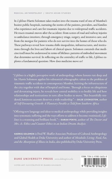 In Lifelines Harris Solomon takes readers into the trauma ward of one of Mumbai's busiest public hospitals, narrating the stories of the patients, providers, and families who experience and care for traumatic injuries due to widespread traffic accidents. He traces trauma's moves after the accident: from scenes of road and railway injuries to ambulance interiors; through emergency triage, surgery, and intensive care; and from the morgue for patients who do not survive into the homes of those who do. These pathways reveal how trauma shifts inequalities, infrastructures, and institutions through the lives and labors of clinical spaces. Solomon contends that medicine itself must be understood in terms of lifelines: patterns of embodied movement that determine survival. In reflecting on the centrality of traffic to life, Lifelines explores a fundamental question: How does medicine move us?
