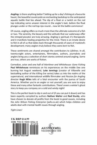 Angling. Is there anything better? Setting up for a day's fishing at a favourite haunt, the beautiful countryside an enchanting backdrop to the anticipated aquatic battle that lies ahead. The dip of a float or a twitch on the rod top indicating some unseen interest in the angler's bait, before the float plunges under or the rod top rips round... now let the battle commence! Of course, angling offers so much more than the ultimate outcome of a fish or two. The serenity, the beauty and the solitude that our waterways offer the intrepid piscator are truly amazing. Angling is spiritual; it's therapeutic and it manifests healing properties for the mind. There is an innate desire to fish in all of us that dates back through thousands of years of mankind's development; many anglers truly believe they were born to fish. These sentiments are shared amongst the contributors to Lifelines. In all, twenty-eight actors, entertainers, filmmakers, authors, journalists and anglers bring you a selection of short stories centred around angling. Some are true, others are works of fiction. Comedian, actor and one half of Mortimer and Whitehouse: Gone Fishing Paul Whitehouse reminisces on his experiences on the middle Dee one burning hot August weekend, Luke Jennings (creator of Villanelle and bestselling author of the Killing Eve series) takes us into the realms of the supernatural, and international wildlife filmmaker and Passion for Angling director Hugh Miles tells of a fatal encounter with the pumas of South America. Whether you're an angler or not yourself, you are sure to enjoy these and many other fantastic contributions. There's even a winter's ghost story to keep you company on a cold and windy night! This is the perfect book to dip in and out of (if you can put it down) and has been expertly compiled by authors Nathan Walter and Rod Sturdy. Tight Lines!