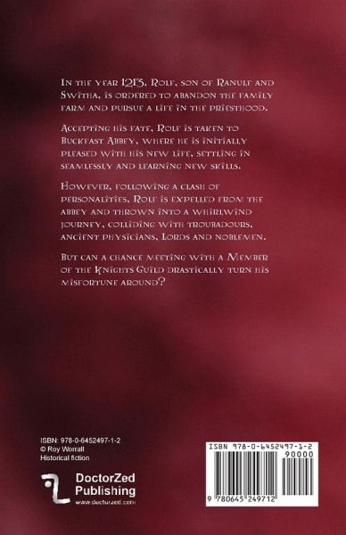 In the year 1213, Rolf, son of Ranulf and Switha, is ordered to abandon the family farm and pursue a life in the priesthood. Accepting his fate, Rolf is taken to Buckfast Abbey, where he is initially pleased with his life, settling in seamlessly and learning new skills. However, following a clash of personalities, Rolf is expelled from the Abbey and thrown into a whirlwind journey, colliding with travelling players, Lords and Noblemen. But can a chance meeting with a member of the Knights Guild drastically turn his misfortune around?