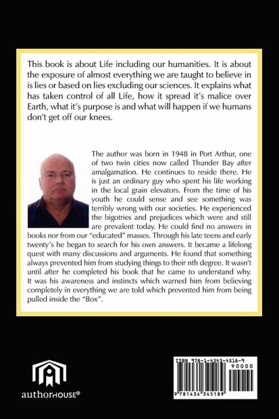 This book is about Life including our humanities. It is about the exposure of almost everything we are taught to believe in is lies or based on lies excluding our sciences. It explains what has taken control of all Life, how it spread it's malice over Earth, what it's purpose is and what will happen if we humans don't get off our knees.