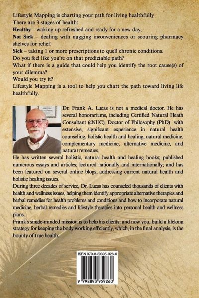 Dr. Frank A. Lucas is not a medical doctor. He has several honorariums, including Certified Natural Heath Consultant (cNHC), Doctor of Philosophy (PhD) with extensive, significant experience in natural health counseling, holistic health and healing, natural medicine, complementary medicine, alternative medicine, and natural remedies. He has written several holistic, natural health and healing books; published numerous essays and articles; lectured nationally and internationally; and has been featured on several online blogs, addressing current natural health and holistic healing issues. During three decades of service, Dr. Lucas has counseled thousands of clients with health and wellness issues, helping them identify appropriate alternative therapies and herbal remedies for health problems and conditions and how to incorporate natural medicine, herbal remedies and lifestyle therapies into personal health and wellness plans. Frank's single-minded mission is to help his clients, and now you, build a lifelong strategy for keeping the body working efficiently, which, in the final analysis, is the bounty of true health.