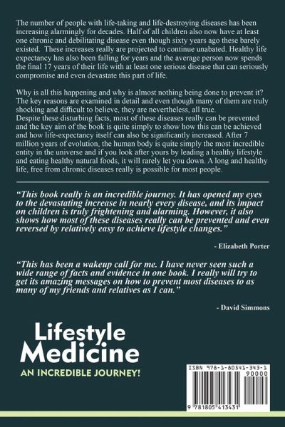 "This book really is an incredible journey. It has opened my eyes to the devastating increase in nearly every disease, and its impact on children is truly frightening and alarming. However, it also shows how most of these diseases really can be prevented and even reversed by relatively easy to achieve lifestyle changes." -Elizabeth Porter The number of people with life-taking and life-destroying diseases has been increasing alarmingly for decades. Half of all children also now have at least one chronic and debilitating disease even though sixty years ago these barely existed. These increases really are projected to continue unabated. Healthy life expectancy has also been falling for years and the average person now spends the final 17 years of their life with at least one serious disease that can seriously compromise and even devastate this part of life. Why is all this happening and why is almost nothing being done to prevent it? The key reasons are examined in detail and even though many of them are truly shocking and difficult to believe, they are nevertheless, all true. Despite these disturbing facts, most of these diseases really can be prevented and the key aim of the book is quite simply to show how this can be achieved and how life-expectancy itself can also be significantly increased. After 7 million years of evolution, the human body is quite simply the most incredible entity in the universe and if you look after yours by leading a healthy lifestyle and eating healthy natural foods, it will rarely let you down. A long and healthy life, free from chronic diseases really is possible for most people. "This has been a wakeup call for me. I have never seen such a wide range of facts and evidence in one book. I really will try to get its amazing messages on how to prevent most diseases to as many of my friends and relatives as I can." -David Simmons