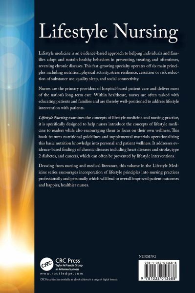 Lifestyle medicine is an evidence-based approach to helping individuals and families adopt and sustain healthy behaviors in preventing, treating, and oftentimes, reversing chronic diseases. This fast-growing specialty operates off six main principles including nutrition, physical activity, stress resilience, cessation or risk reduction of substance use, quality sleep, and social connectivity. Nurses are the primary providers of hospital-based patient care and deliver most of the nation's long-term care. Within healthcare, nurses are often tasked with educating patients and families and are thereby well-positioned to address lifestyle intervention with patients. Lifestyle Nursing examines the concepts of lifestyle medicine and nursing practice, it is specifically designed to help nurses introduce the concepts of lifestyle medicine to readers while also encouraging them to focus on their own wellness. This book features nutritional guidelines and supplemental materials operationalizing this basic nutrition knowledge into personal and patient wellness. It addresses evidence-based findings of chronic diseases including heart diseases and stroke, type 2 diabetes, and cancers, which can often be prevented by lifestyle interventions. Drawing from nursing and medical literature, this volume in the Lifestyle Medicine series encourages incorporation of lifestyle principles into nursing practices professionally and personally which will lead to overall improved patient outcomes and happier, healthier nurses.
