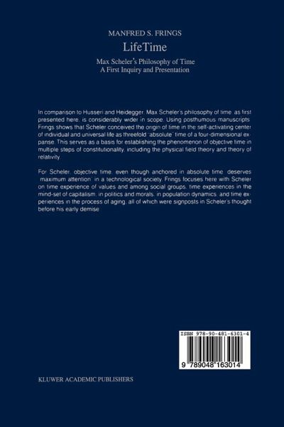 In comparison to Husserl and Heidegger, Max Scheler's philosophy of time as first presented here, is considerably wider in scope. Using posthumous manuscripts, Frings shows that Scheler conceived the origin of time in the self-activating center of individual and universal life as threefold "absolute" time of a four-dimensional expanse. This serves as a basis for establishing the phenomenon of objective time in multiple steps of constitutionality, including the physical field theory and theory of relativity.