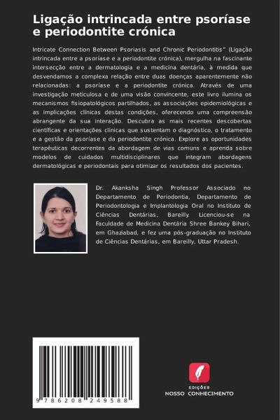 Intricate Connection Between Psoriasis and Chronic Periodontitis¿ (Ligação intrincada entre a psoríase e a periodontite crónica), mergulha na fascinante intersecção entre a dermatologia e a medicina dentária, à medida que desvendamos a complexa relação entre duas doenças aparentemente não relacionadas: a psoríase e a periodontite crónica. Através de uma investigação meticulosa e de uma visão convincente, este livro ilumina os mecanismos fisiopatológicos partilhados, as associações epidemiológicas e as implicações clínicas destas condições, oferecendo uma compreensão abrangente da sua interação. Descubra as mais recentes descobertas científicas e orientações clínicas que sustentam o diagnóstico, o tratamento e a gestão da psoríase e da periodontite crónica. Explore as oportunidades terapêuticas decorrentes da abordagem de vias comuns e aprenda sobre modelos de cuidados multidisciplinares que integram abordagens dermatológicas e periodontais para otimizar os resultados dos pacientes.