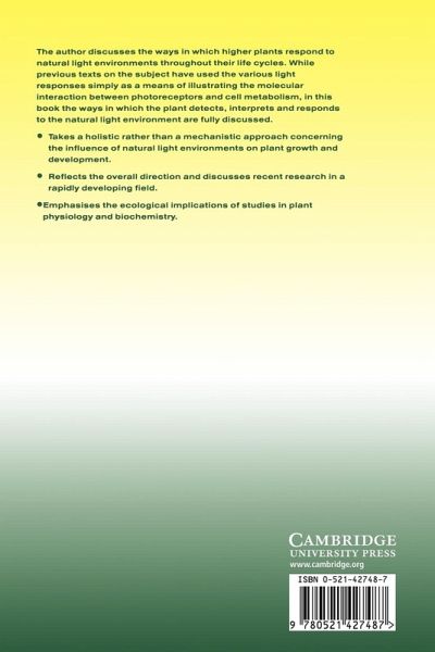 The author discusses the ways in which higher plants respond to natural light environments throughout their life cycles. While previous texts on the subject have used the various light responses simply as a means of illustrating the molecular interaction between photoreceptors and cell metabolism, in this book the ways in which the plant detects, interprets and responds to the natural light environment are fully discussed. It takes a holistic rather than a mechanistic approach concerning the influence of natural light environments on plant growth and development and reflects the overall direction and discusses recent research in a rapidly developing field. This book also emphasises the ecological implications of studies in plant physiology and biochemistry.