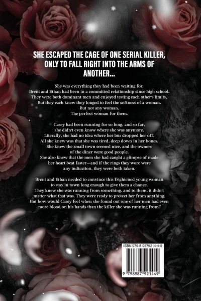 She escaped the cage of one serial killer, only to fall right into the arms of another... She was everything they had been waiting for. Brent and Ethan had been in a committed relationship since high school. They were both dominant men and enjoyed testing each other's limits, But they each knew they longed to feel the softness of a woman. But not any woman. The perfect woman for them. Casey had been running for so long, and so far, she didn't even know where she was anymore. Literally, she had no idea where her bus dropped her off. All she knew was that she was tired, deep down in her bones. She knew the small town seemed nice, and the owners of the diner were good people. She also knew that the men she had caught a glimpse of made her heart beat faster-and if the rings they wore were any indication, they were both taken. Brent and Ethan needed to convince this frightened young woman to stay in town long enough to give them a chance. They knew she was running from something, and to them, it didn't matter what that was. They were ready to protect her from anything. But how would Casey feel when she found out one of her men had even more blood on his hands than the killer she was running from?
