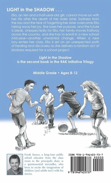 When life is turned upside down and sadness settles in, what's a girl to do? Ella, an ten and a half-year-old girl, cannot move on with her life after the death of her older sister. Sadness from the loss and the fear of forgetting her sister overcome Ella, taking away her joy. She loses her purpose, and the future feels bleak. Unexpectedly for Ella, her family moves halfway across the country, and she has to enroll in a new school mid-year-another unwanted change. When a new boy enters her class, Ella is set on an unexpected path of healing and discovery as she delivers a random act of kindness required for a school project. This is a powerful story of loss and recovery told from a young girl's prospective. Lively characters, an emotionally stirring story line, and settings that seem entirely real make this an appealing story for middle schoolers who like books such as Discovering Winn Dixie, Chirp, and Bridge to Terabithia. Light in the Shadow is the second book in the RAK Initiative Trilogy. Middle School - Ages 8-12
