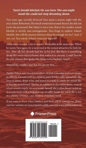 Tara's breath hitched. He was here. The one-night stand she could not stop dreaming about. Two years ago, recently divorced Tara spent a steamy night with the sexy Adam Robertson. His touch awakened sensual desires she did not know she possessed. But Adam is not a wise choice: his cavalier sexual lifestyle is strictly non-monogamous. Tara longs to explore Adam's lifestyle, but will the passion between them be enough for her? And, if not, can Tara satisfy Adam's voracious appetite? Adam loves women. Lots of women. Preferably at the same time. When he meets Tara again, he is surprised at the instant attraction he feels for her. After all, he's already had her in his bed. But there is something about this raven-haired beauty that makes him curious. Could Tara be the one woman that ignites the flame in his bachelor heart? Meanwhile, another man has his eye on Tara...