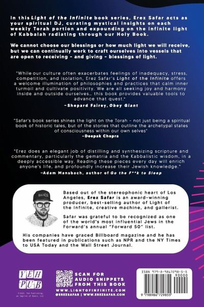 Fall in love with life through weekly doses of ancient Jewish mystic inspiration! In this Light of Infinite book series, Erez Safar acts as your spiritual DJ, curating mystical insights on each weekly Torah portion and expounding on the infinite light of Kabbalah radiating through our Holy Book. Just like on the dance floor, where the right song at the right moment can elevate our physical being, this book hits all the right beats for our spiritual being. Light of the Infinite's goal is to radiate positivity from within, to be able to dive into yourself and search beyond the realm of consciousness. The series is focused on bringing in more blessings into your life through connecting to yourself and being present through stories, examples and kabbalic wisdom.
