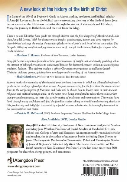 In Light of the World: A Beginner's Guide to Advent, author, professor, and biblical scholar Amy-Jill Levine explores the biblical texts surrounding the story of the birth of Jesus. Join her as she traces the Christmas narrative through the stories of Zechariah and Elizabeth, Mary, the journey to Bethlehem, and the visit from the Magi. These stories open conversations around connections of the Gospel stories to the Old Testament, the role of women in first-century Jewish culture, the importance of Mary's visitation and the revolutionary implications of Mary's Magnificat, the census and the stable, and the star of Bethlehem and the flight to Egypt. The book provides a rich and challenging learning experience for small groups and individual readers alike. As part of a larger four-week study that is perfect for Advent, it includes a DVD and a comprehensive leader guide.