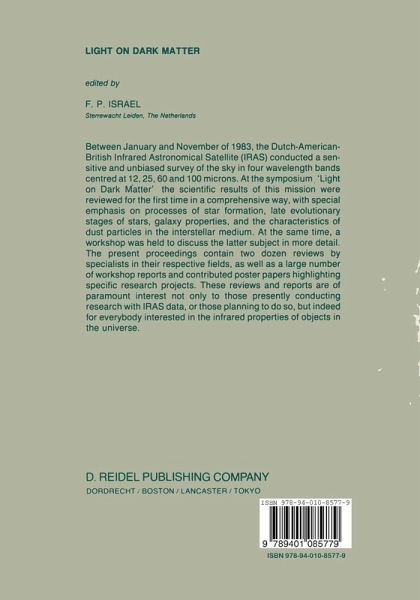'Light on Dark Matter', held from 10-14 June 1985 in the Dutch seaside resort of Noordwijk, was the first international conference devoted to the results of the all-sky survey by the US-Dutch-UK Infra-Red Astronomical Satellite (IRAS). As such, it was a hommage to the scientists, engineers and technicians who conceived, built and operated this extremely successful satellite. That this was generally felt to be the case, was proven by the large number of participants (over 200 from seventeen different nations), the li vely discussions, and the great variety of topics presented during the meeting. All this not withstanding a typical Dutch summer: gale-force winds, heavy cloud cover, and meter-high surf crashing onto a beach on which only the hardy ventur. ed. Most participants contented themselves by watching the lonely seagulls patrolling the North Sea coastline through the panoramic windows of the conference center. Parallel to the IRAS Conference, a Workshop on Infrared Properties of Interstellar Grains was organized by J. M. Greenberg of the Leiden Laboratory Astrophysics Group: a busy shuttling of participants between the Workshop room and the Main Conference Hall showed that many found it hard to choose. A large number of people were invol ved in making the Conference a success: in the first place the scientific organizers with their valuable advice and the conference speakers, among which I would like to mention Dr. J. H.