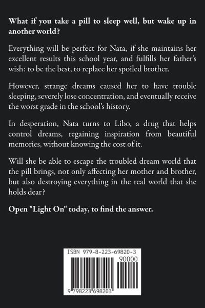 What if you take a pill to sleep well, but wake up in another world? Everything will be perfect for Nata, if she maintains her excellent results this school year, and fulfills her father's wish: to be the best, to replace her spoiled brother. However, strange dreams caused her to have trouble sleeping, severely lose concentration, and eventually receive the worst grade in the school's history. In desperation, Nata turns to Libo, a drug that helps control dreams, regaining inspiration from beautiful memories, without knowing the cost of it. Will she be able to escape the troubled dream world that the pill brings, not only affecting her mother and brother, but also destroying everything in the real world that she holds dear? Open "Light On" today, to find the answer.