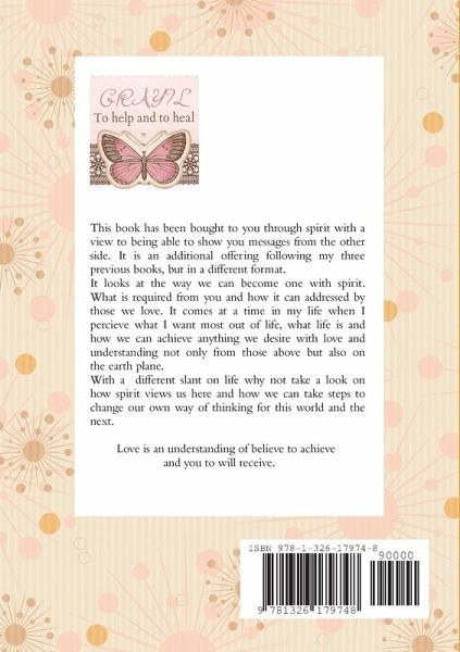 In this fourth book, although it is part of the series it looks at life through the eyes of spirit. It defines how we need to progress and how we can make changes to our life to be able to prepare for the next. To understand the world as we know it and progress at a pace that not only suits us but allows us to grow to achieve our life path and acknowledge the love we all share and need.