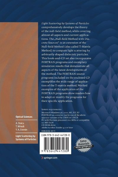 Light Scattering by Systems of Particles comprehensively develops the theory of the null-field method, while covering almost all aspects and current applications. The Null-field Method with Discrete Sources is an extension of the Null-field Method (also called T-Matrix Method) to compute light scattering by arbitrarily shaped dielectric particles. It also incorporates FORTRAN programs and exemplary simulation results that demonstrate all aspects of the latest developments of the method. Worked examples of the application of the FORTRAN programs show readers how to adapt or modify the programs for his specific application.…mehr